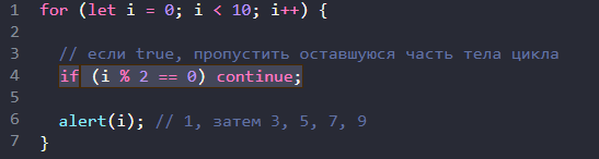 В нашем примере так же будет выполнено три итерации, в которых в консоль будет выведено 0, 1, 2. По итогу выполнения цикла переменная i будет доступна вне цикла, а её значение будет равно трем. В нашем конкретном примере очень важно не забыть изменять значение переменной i, иначе мы можем попасть в вечный цикл, ведь, если мы не изменяли бы значение i, то оно бы никогда не стало большим или равным трем, чтобы выполнение цикла прекратилось.